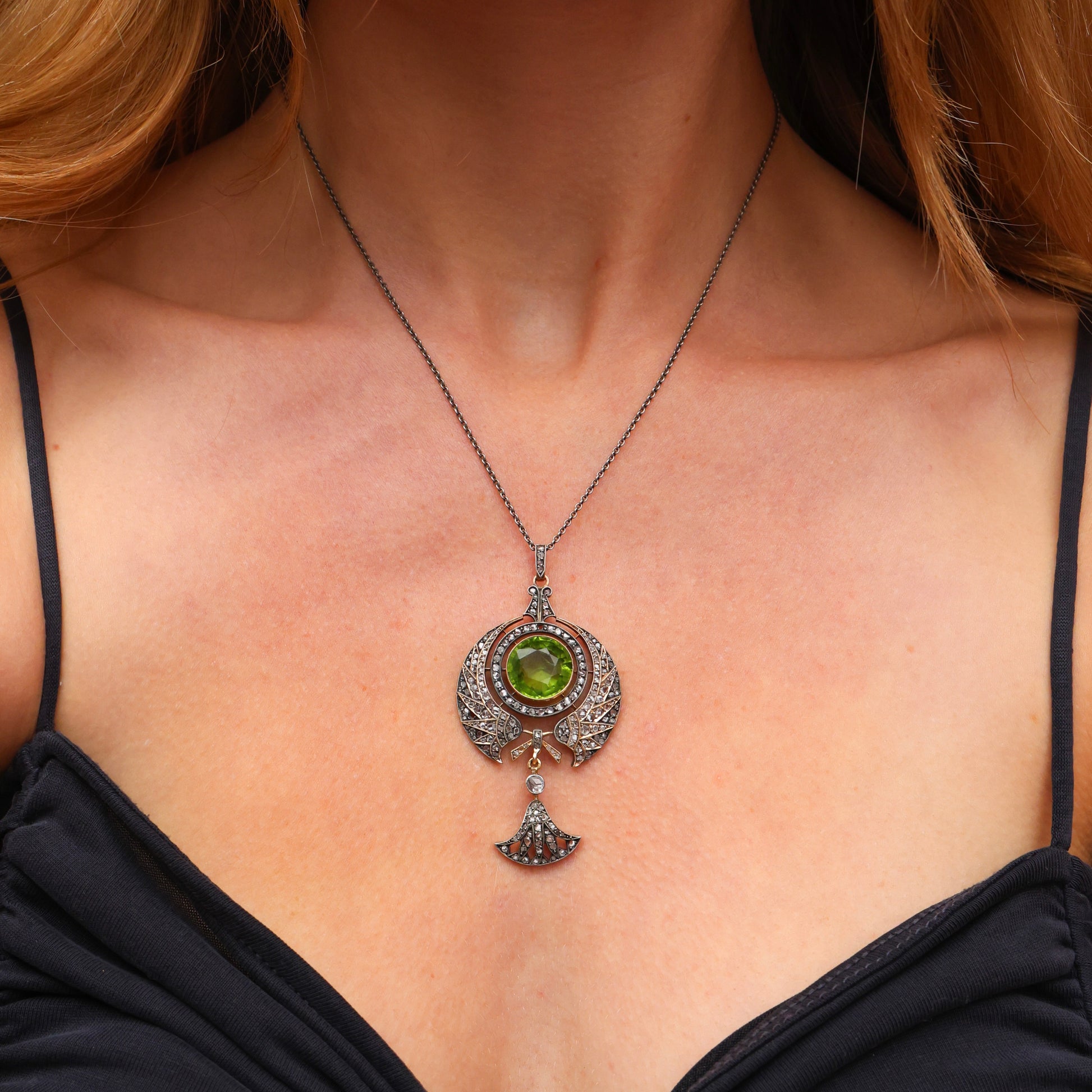 Ca 1880 Egyptian revival pendant in gold and silver, set with Peridot and small diamonds