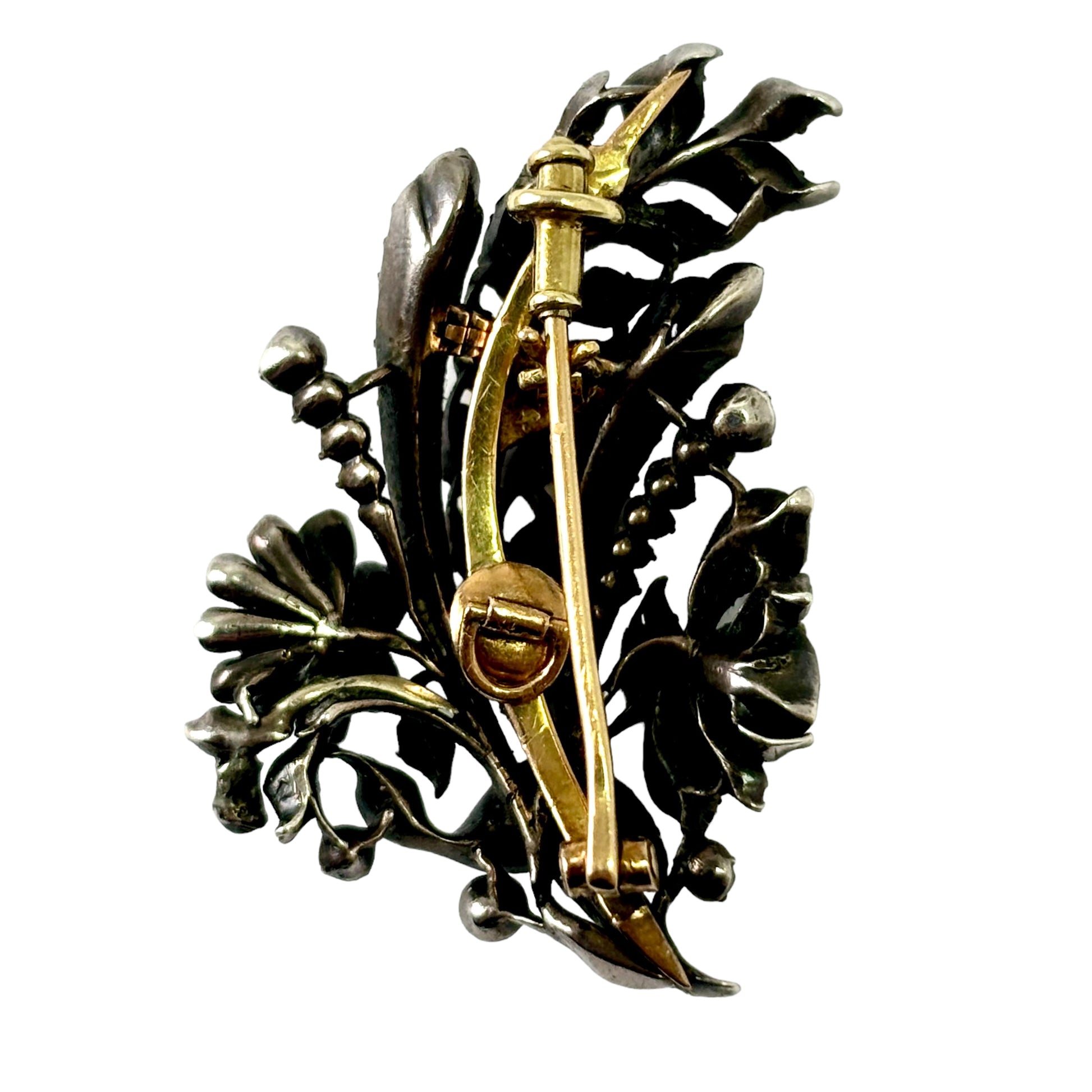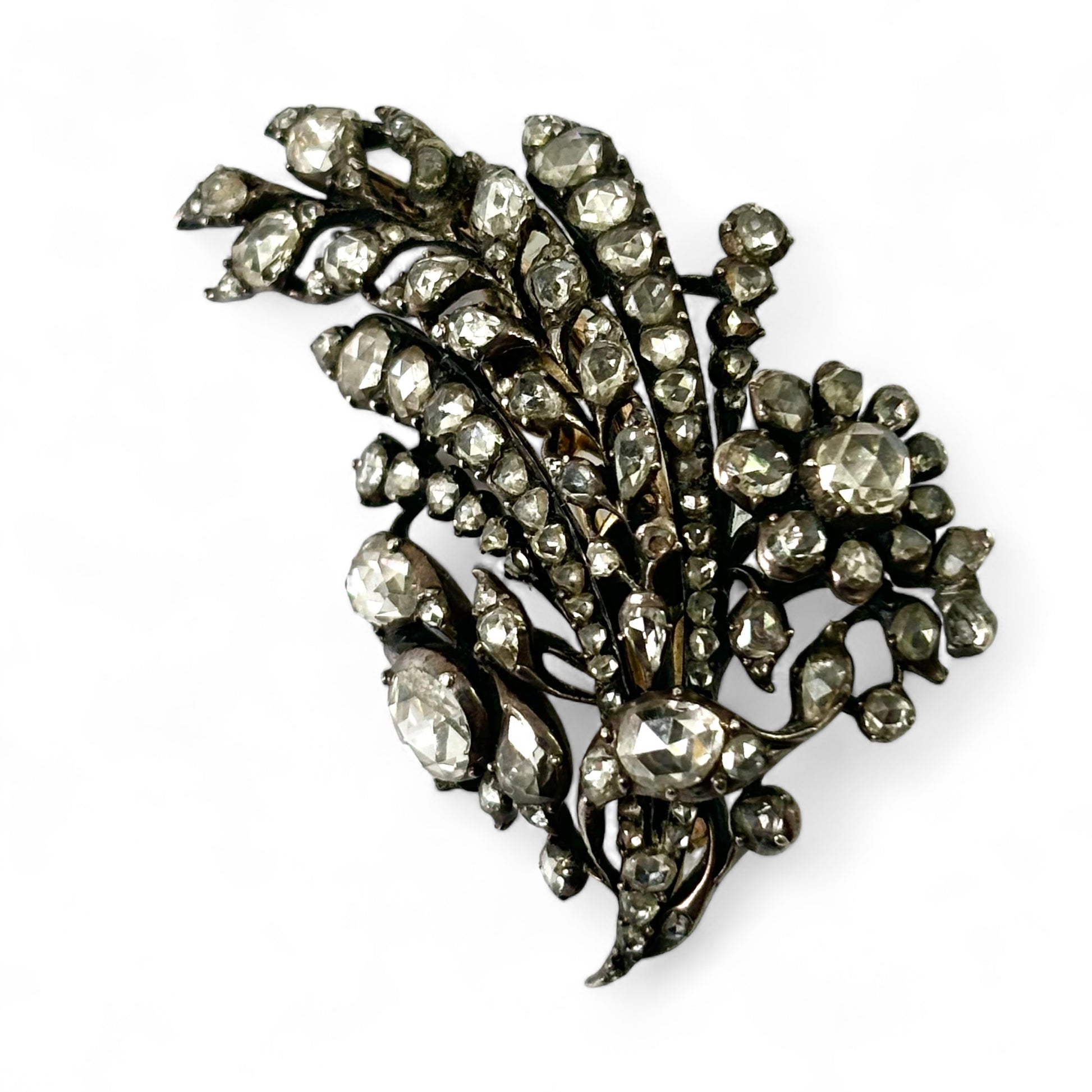 Georgian silver diamond spray. English ca 1760-70 silver brooch set with rose cut diamonds