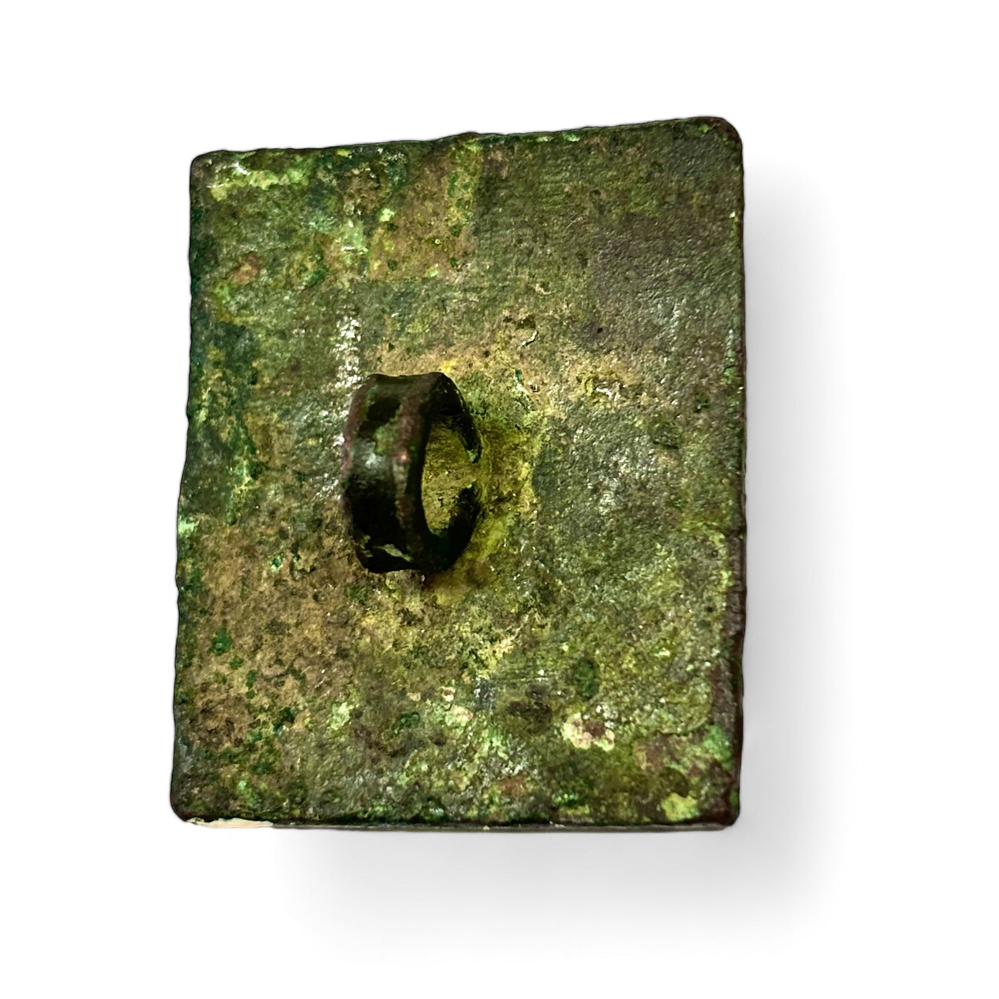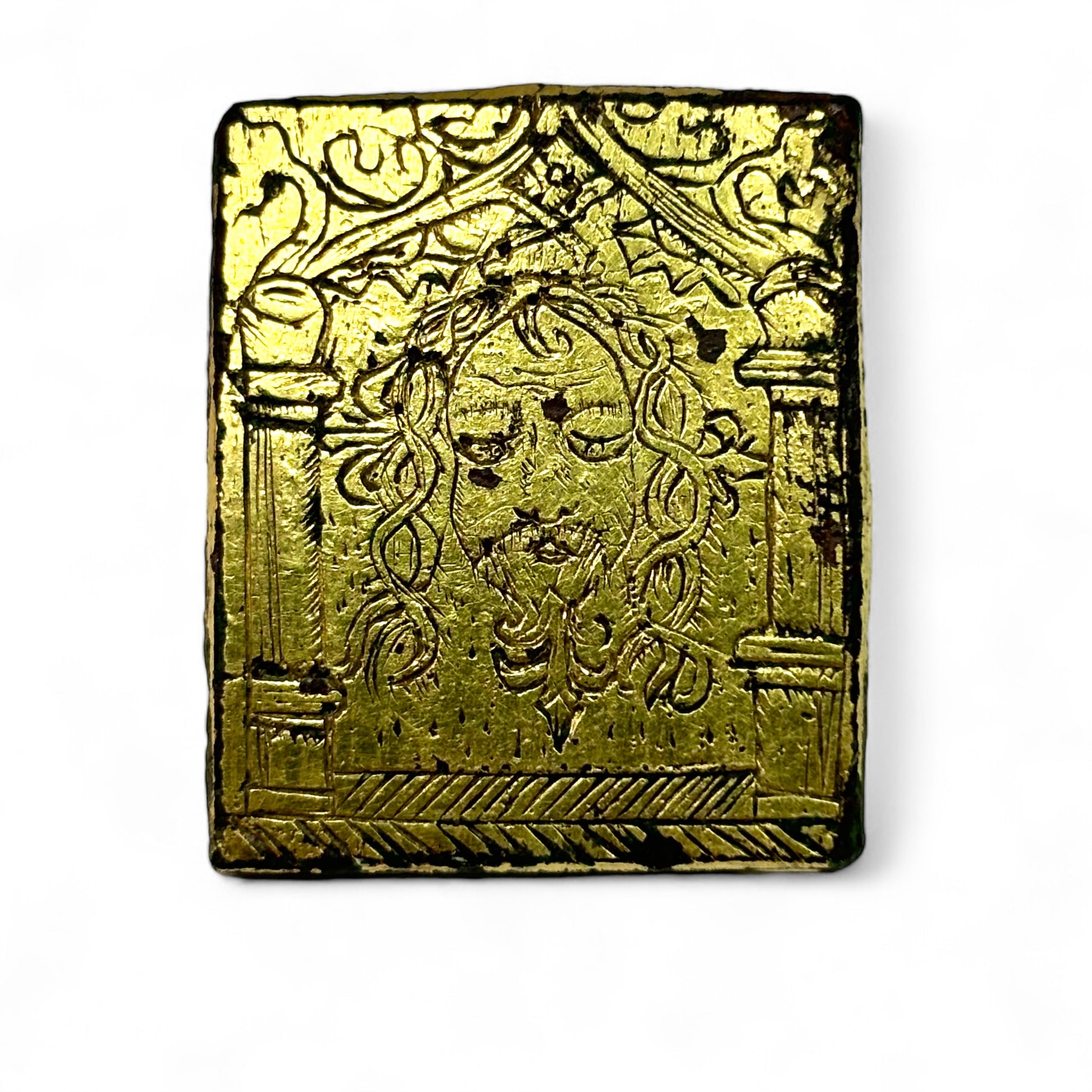 Fire gilt base metal Medieval pilgrims badge with the image of Christ. Probably France ca 1400