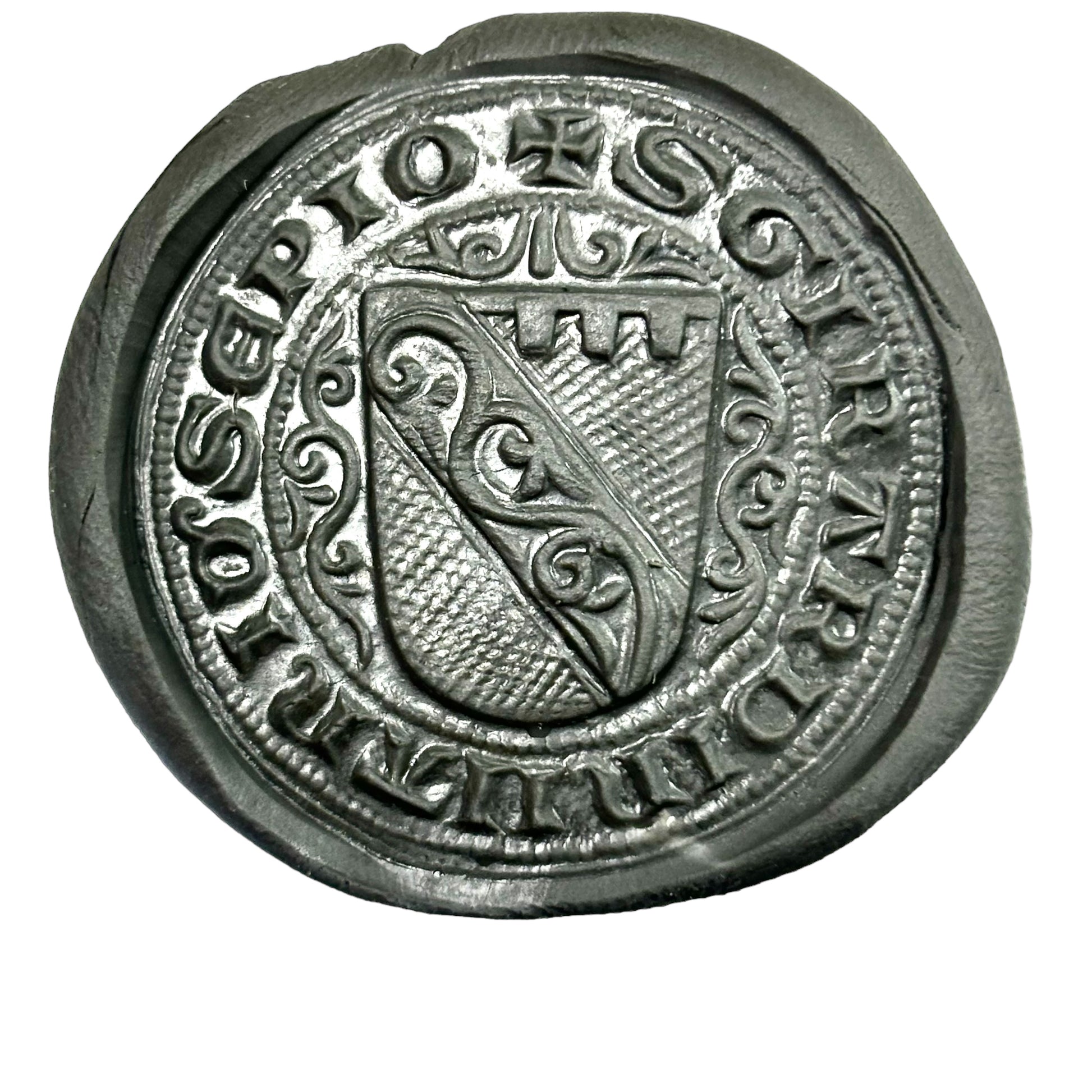 Probably Spanish or Southern France ca 1150 AD. “Large” silver seal, with armorial in the centre.