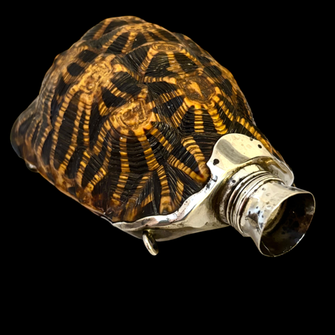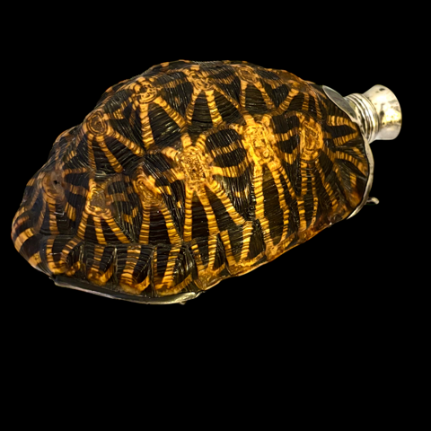 Late eighteenth century silver mounted tortoise powder flask. In very good original condition.