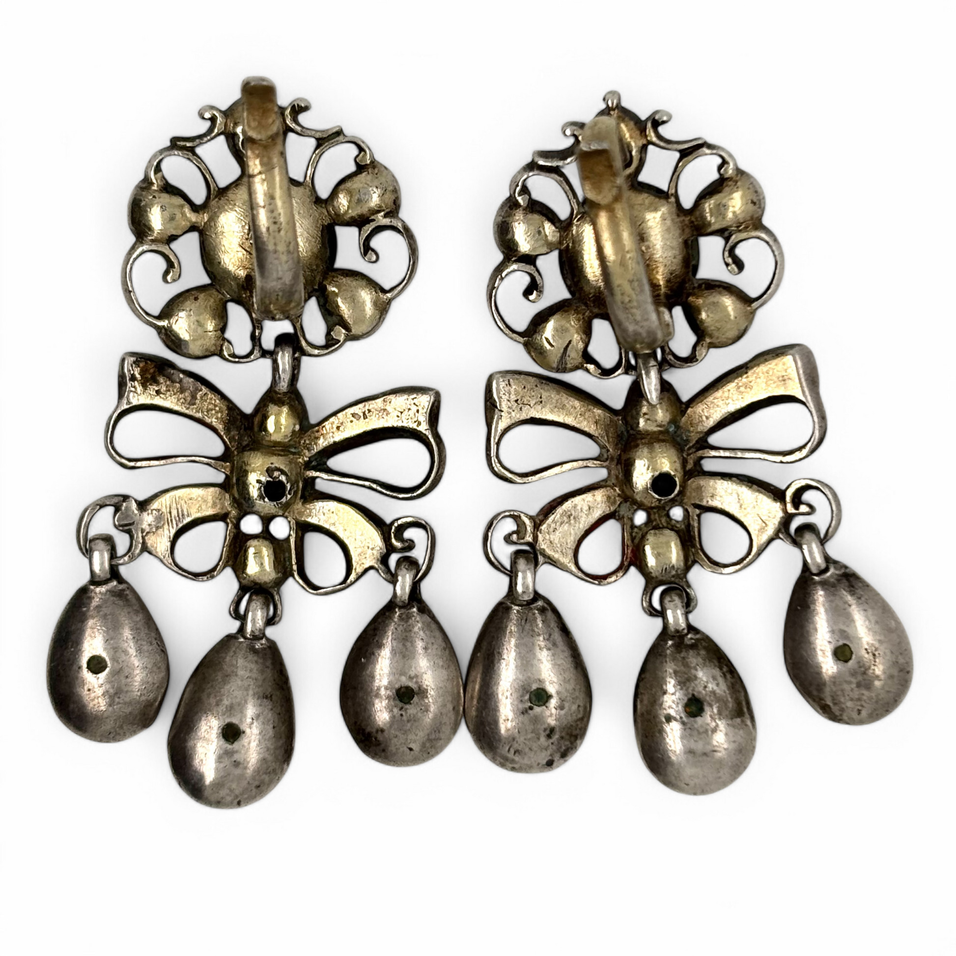 Pair of ca 1750-60 silver chandelliar earrings with rubies with the original fittings. All in original and in very good condition.