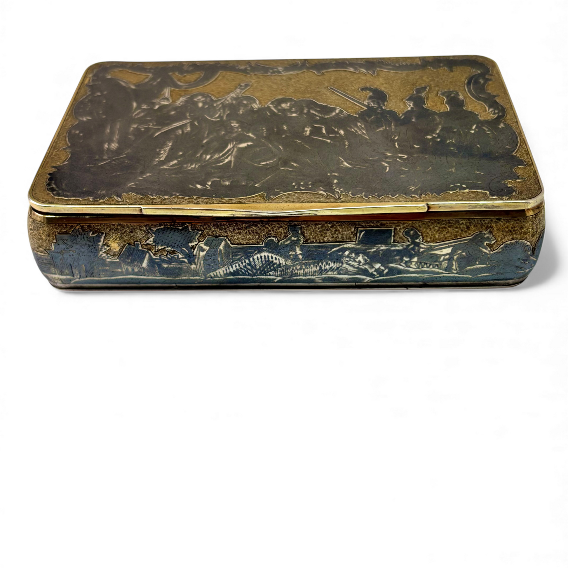 “Large” Russian silver gilt snuffbox with niello decoration on all sides. The box is in excellent condition. Fully hallmarked with Moscow marks and dated 1826